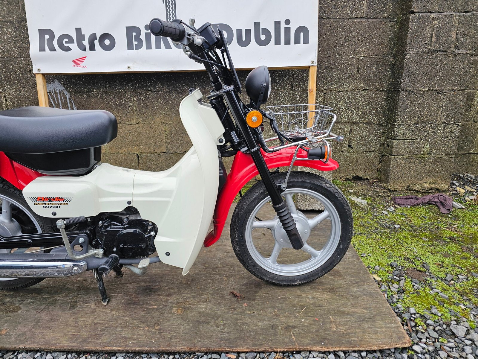 2008 Suzuki Birdie 50 (Fuel Injected) – Rare Low-Mileage Moped for Sale in Dublin Looking for a unique, ultra-reliable alternative to the classic Super Cub? Meet the 2008 Suzuki Birdie 50. This fuel-injected (FI) model is a standout in the world of small-capacity step-throughs, offering modern efficiency paired with rugged, retro utility. Finished in a striking red and cream, this Birdie is built for the Dublin commuter who wants reliability with a bit of rare flair. With an incredibly low 2,624 KM on the clock, this bike is in near-showroom condition and ready for years of fuel-efficient riding across Ireland. Key Features & Highlights: